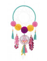 Contiens : 1 attrape-rêves à monter (pompons et accessoires à réaliser puis accrocher), 1 porte-clés à coudre, 1 pochette à coudre et 1 notice.
