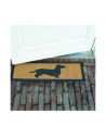 Ce tapis en fibres coco représentant un teckel.