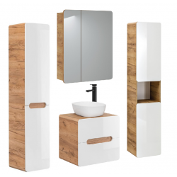 Archipel est une collection extraordinaire dont le design léger et moderne est vraiment attachant. Les structures aux tons bois, combinées aux façades blanches, forment un ensemble délicat, typique des luxueux SPA tropicaux. Les bords arrondis de toutes les armoires ajoutent une touche légère et originale à la série, tandis que les façades sans poignées reflètent les dernières tendances. La collection se compose de nombreux types d'armoires basses et hautes, ce qui permet de créer un ensemble individuel et unique.