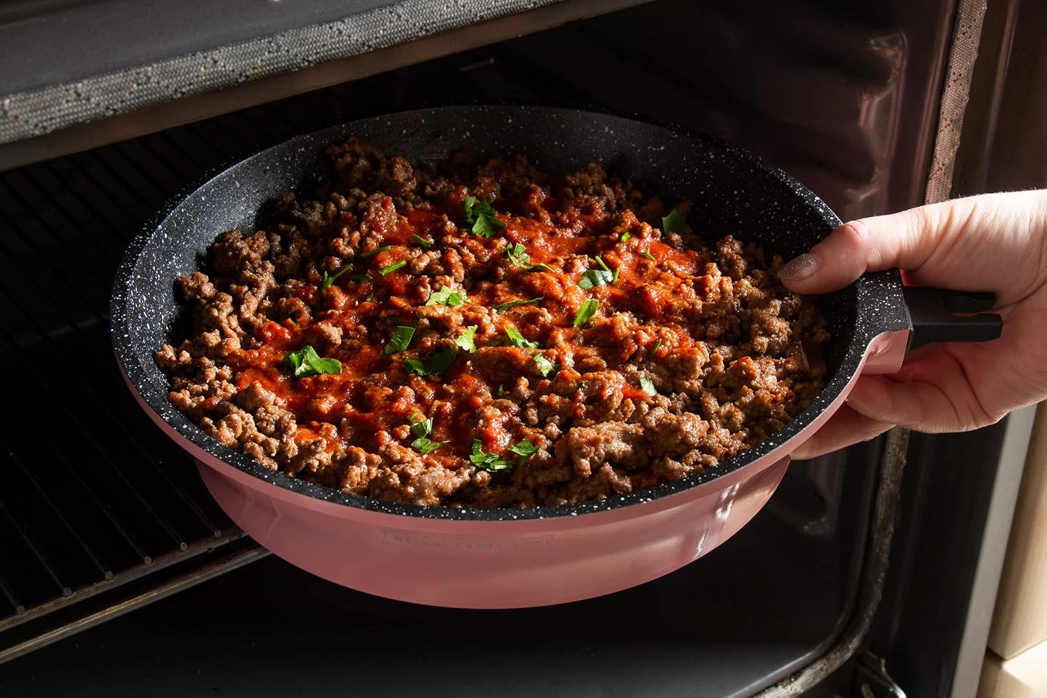 - Une poêle à frire profonde de 3,5L : D 28 x H 6,5 cm.