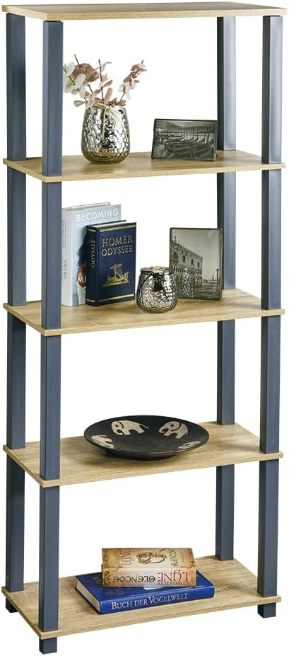 Cette étagère 5 niveaux associe un design moderne et une construction durable pour apporter un rangement efficace dans nimporte quel intérieur. Ses plateaux en bois FSC offrent une surface stable et chaleureuse, tandis que la structure noire crée un contraste décoratif contemporain. Grâce à sa hauteur généreuse, elle permet dexploiter pleinement lespace vertical et accueille livres, paniers, objets décoratifs ou accessoires du quotidien. Compacte et élégante, elle convient aussi bien à une salle de séjour quà une chambre ou un espace de travail. Son assemblage simple la rend accessible à tous, pour un meuble pratique, esthétique et durable.