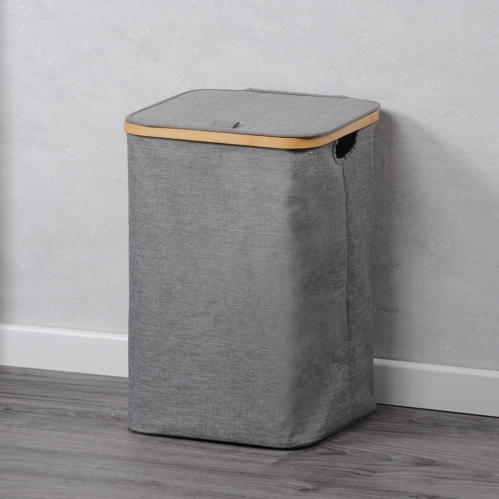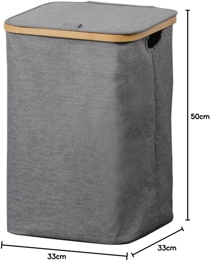 Ce panier à linge combine élégance et fonctionnalité grâce à son association de tissu polyester gris et de bambou FSC naturel. Sa structure rigide garantit une bonne tenue, même lorsquil est rempli, tout en restant léger et facile à déplacer. Le couvercle en bambou permet de dissimuler le contenu et de maintenir un aspect soigné dans une salle de bain, une buanderie ou une chambre. Conçu pour simplifier le quotidien, il évite la dispersion du linge et permet de rassembler toute la lessive au même endroit avant de la transporter en une seule fois. Son format compact mais spacieux en fait un indispensable pour garder un intérieur organisé.