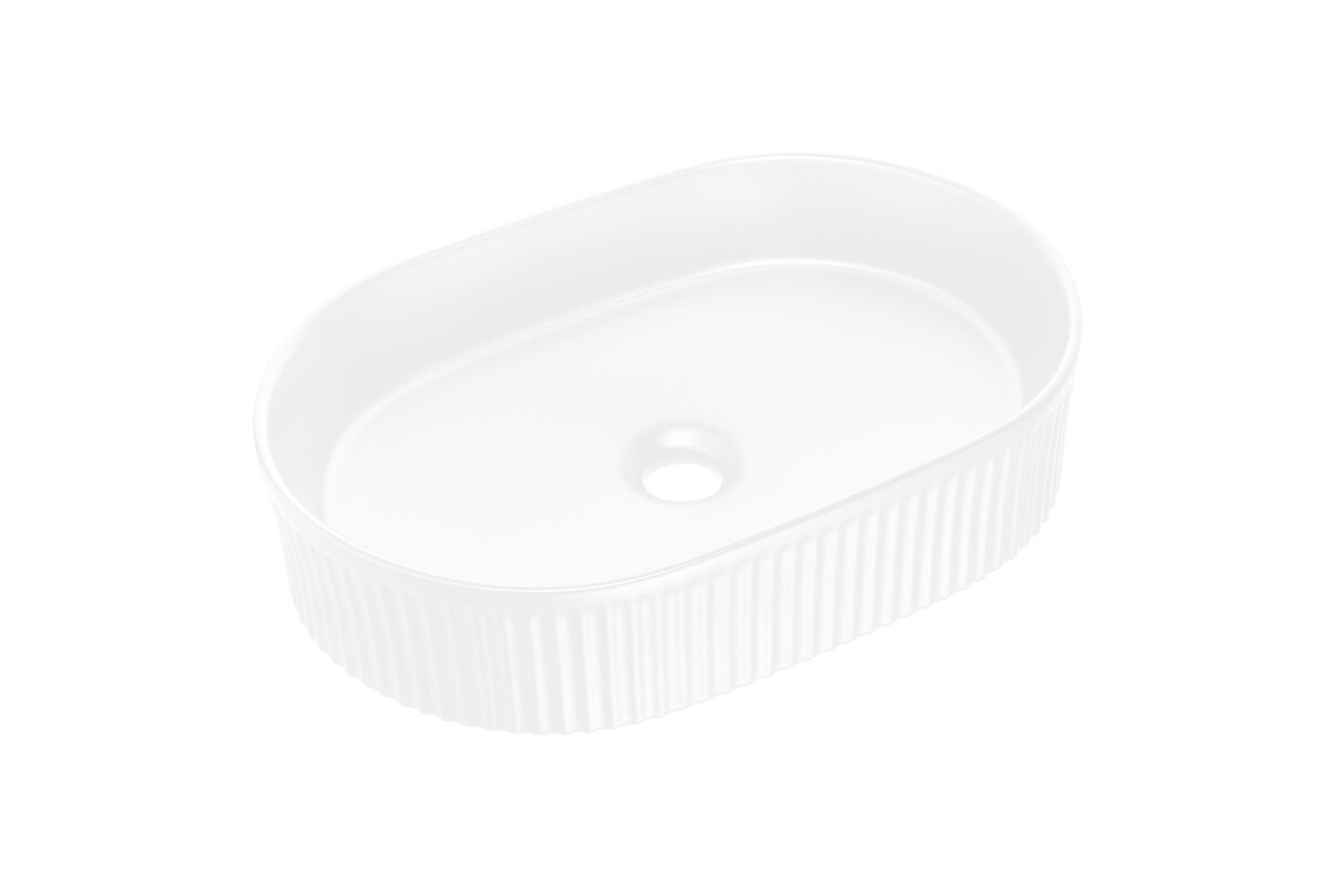 Design extérieur de la vasque effet strié pour une alliance parfaite avec le meuble.
