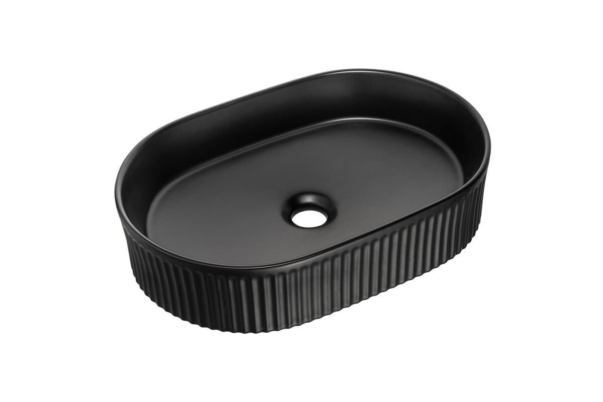 Lensemble est complété par une vasque ovale noire à poser en céramique 48 x 32,5 x H 11 cm. Sa finition lisse et sa forme épurée apportent une touche moderne et lumineuse à lensemble, tout en assurant un entretien facile et une excellente durabilité pour un usage quotidien.