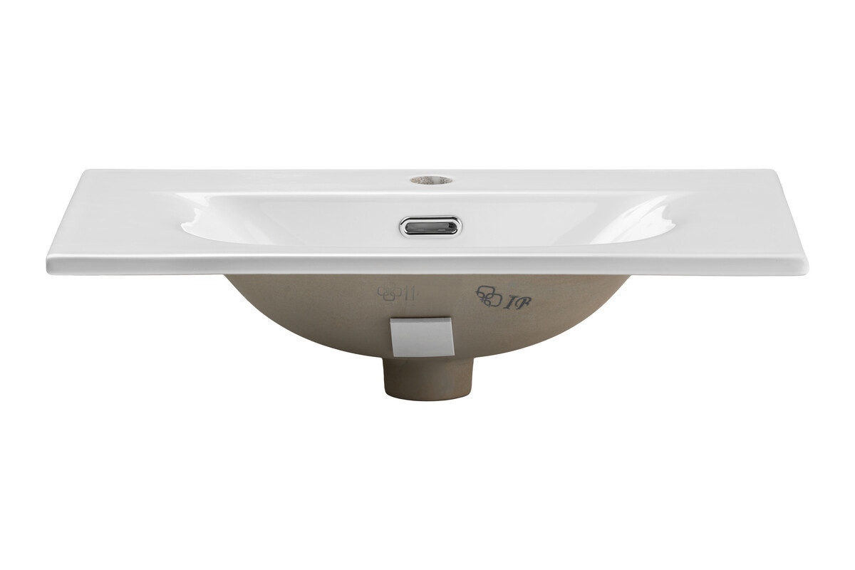 Lensemble est complété par une vasque meuble intégrée de 60 cm en céramique à finition haute brillance. De forme rectangulaire, elle est équipée dun trop-plein positionné à 4,5 cm et dun perçage pour bonde de diamètre standard 3,5 cm, assurant une compatibilité simple avec les équipements sanitaires courants. Sa surface lisse facilite lentretien tout en apportant luminosité et sobriété à lensemble.