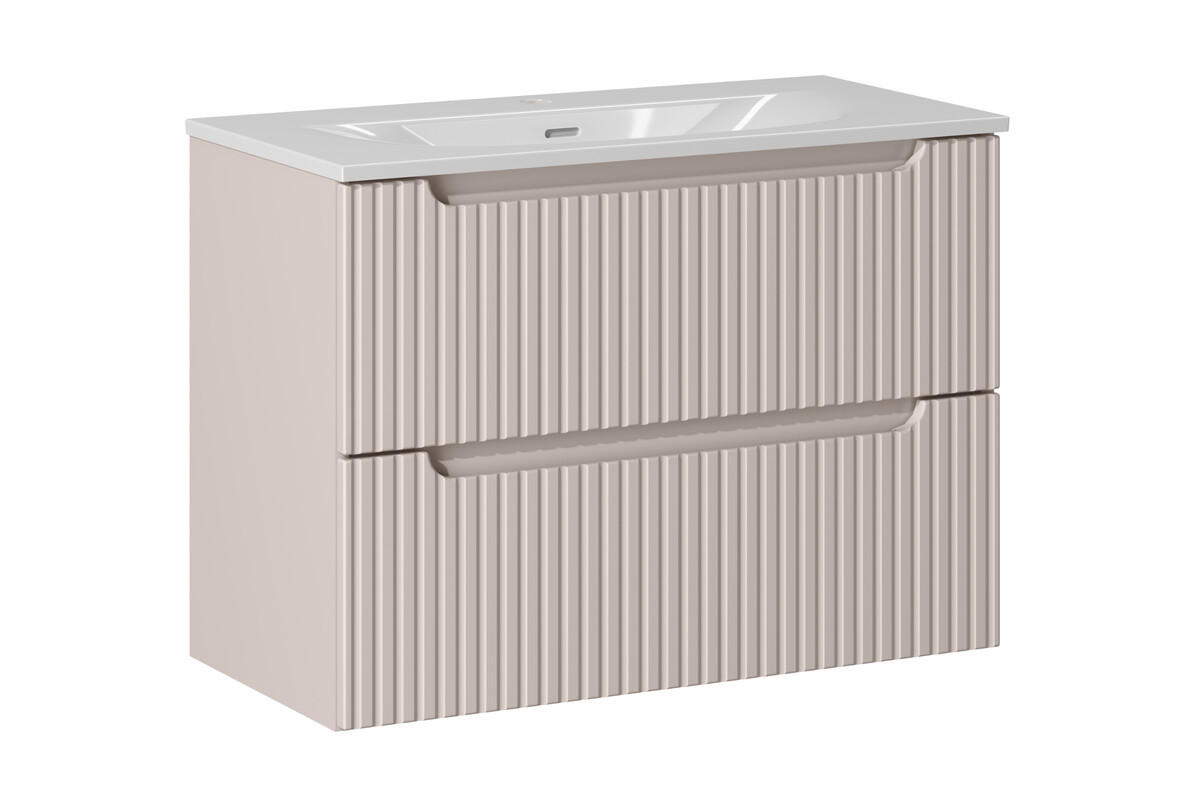 Ensemble meuble de salle de bain 80 cm avec vasque intégrée de la collection Astral Cashmere, conçu pour offrir une solution compacte, élégante et fonctionnelle, parfaitement adaptée aux petites salles de bain et espaces invités.