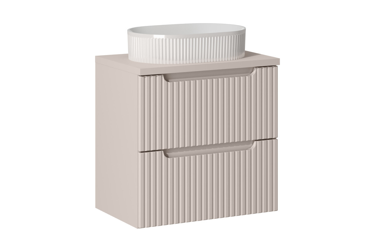 Ensemble meuble de salle de bain 60 cm avec plateau de la collection Astral Cashmere, conçu pour optimiser lespace tout en conservant une esthétique contemporaine et fonctionnelle, idéale pour les petites salles de bain ou les espaces invités.