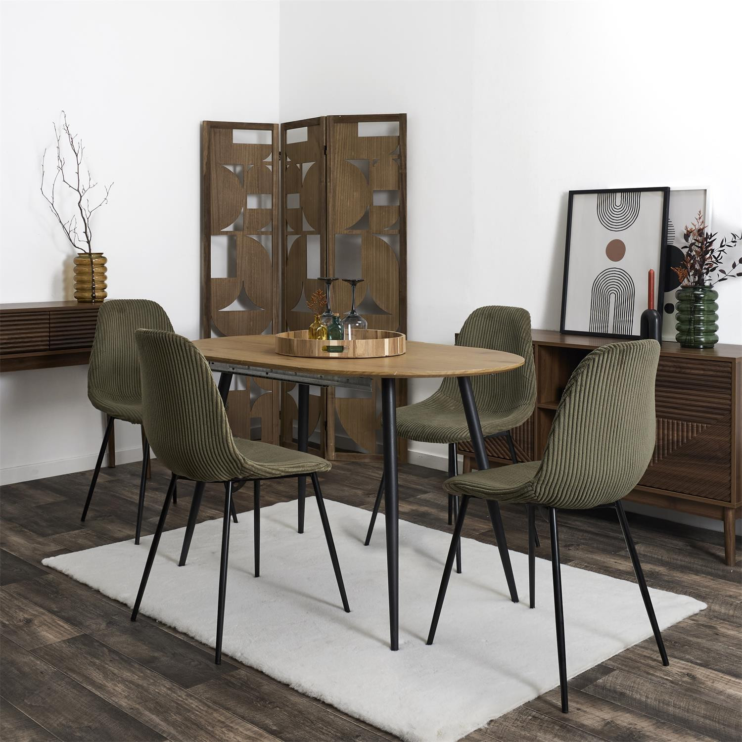 Cette chaise est idéale pour accompagner une table de salle à manger ou un espace repas moderne. Son revêtement textile côtelé apporte une touche décorative chaleureuse tout en restant discret. Lassise et le dossier offrent un bon maintien pour un usage quotidien, que ce soit lors des repas ou pour un usage ponctuel au bureau. Sa structure en métal garantit une bonne stabilité et une durabilité adaptée à un environnement domestique.