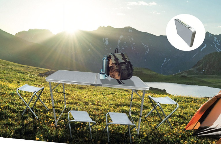 Ce set de camping pliable est la solution idéale pour vos repas en extérieur.