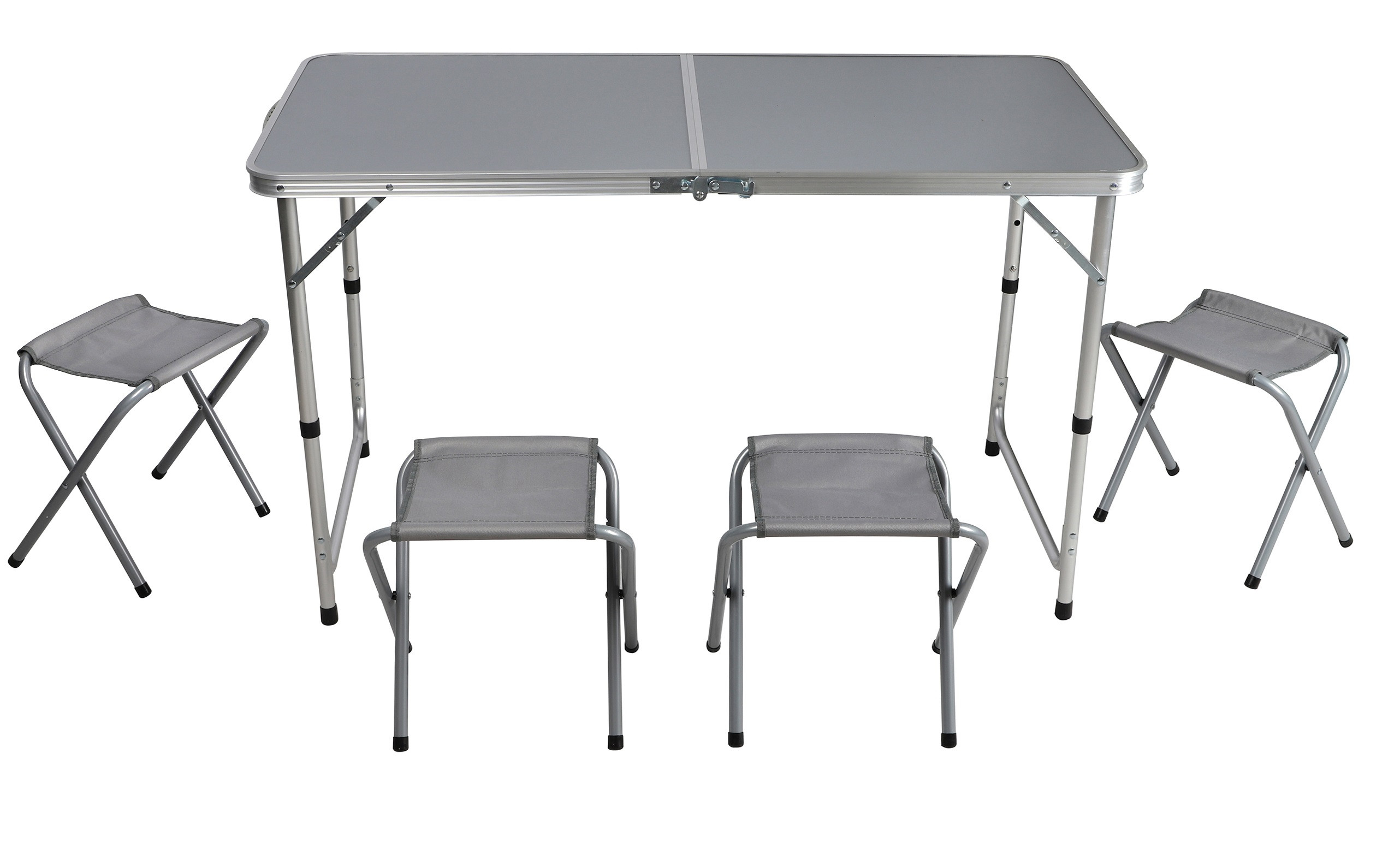 Ensemble complet comprenant 1 table et 4 tabourets pliants.