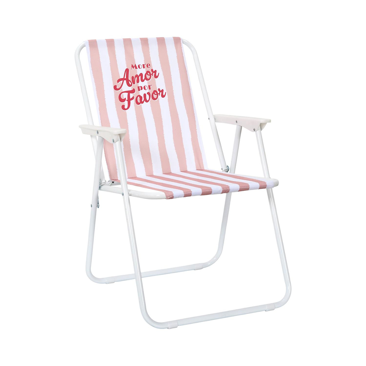 Chaise Ultra Pliante d'Extérieur à Rayures Bayadère - Rose - 44 x 52 x 75 cm