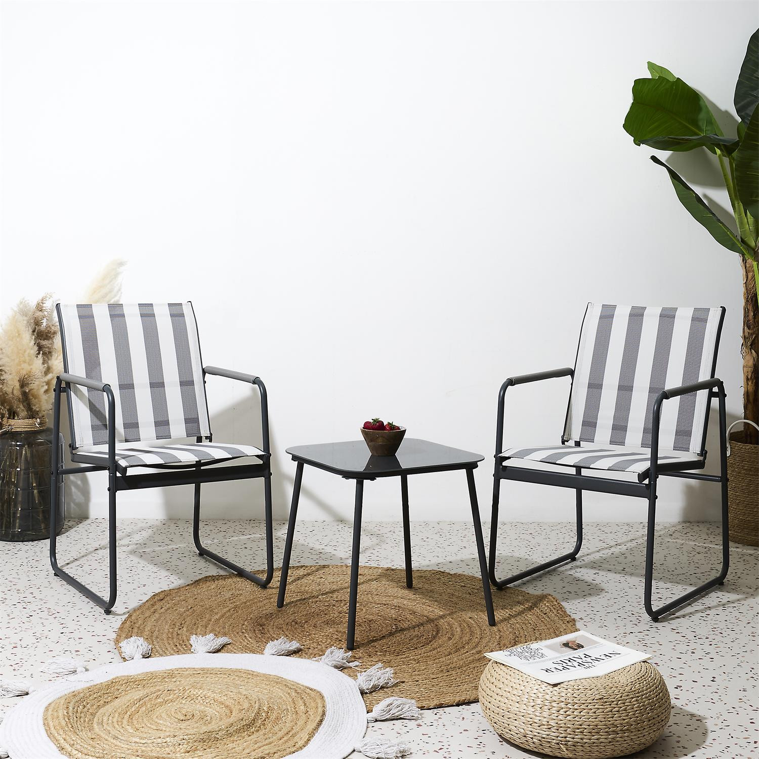 Les fauteuils offrent une assise confortable grâce au textilène souple et résistant.