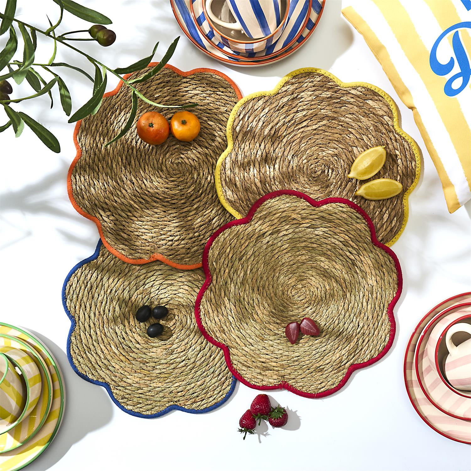Leur forme fleur et leur bord coloré permettent de créer une ambiance conviviale et moderne.