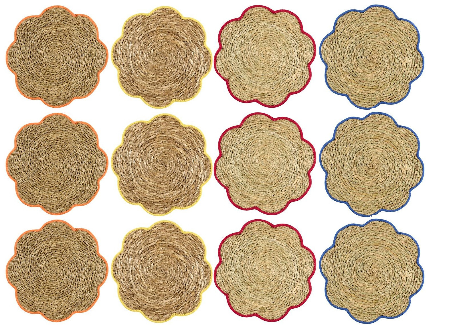 Lot de 12 sets de table décoratifs en forme de fleur.