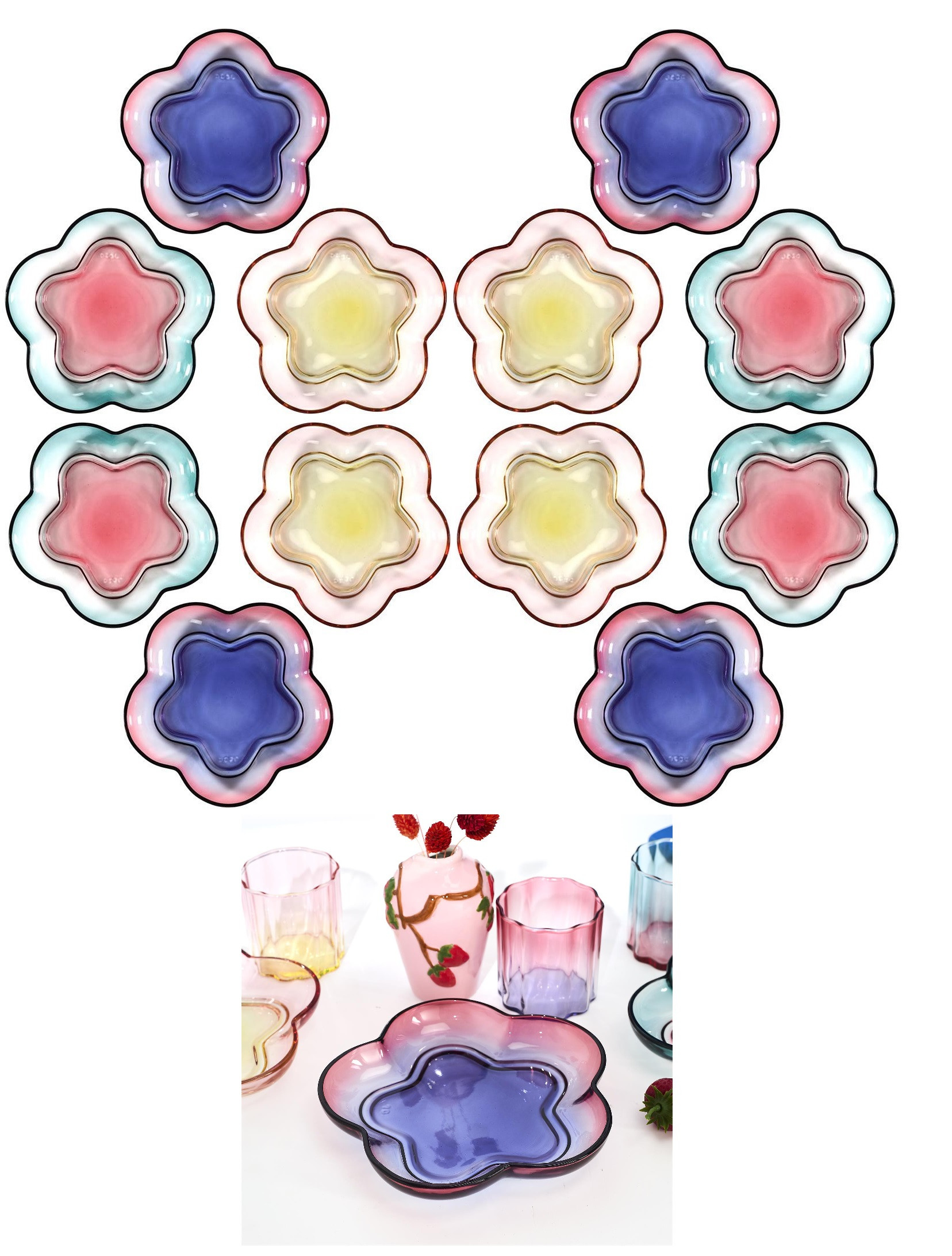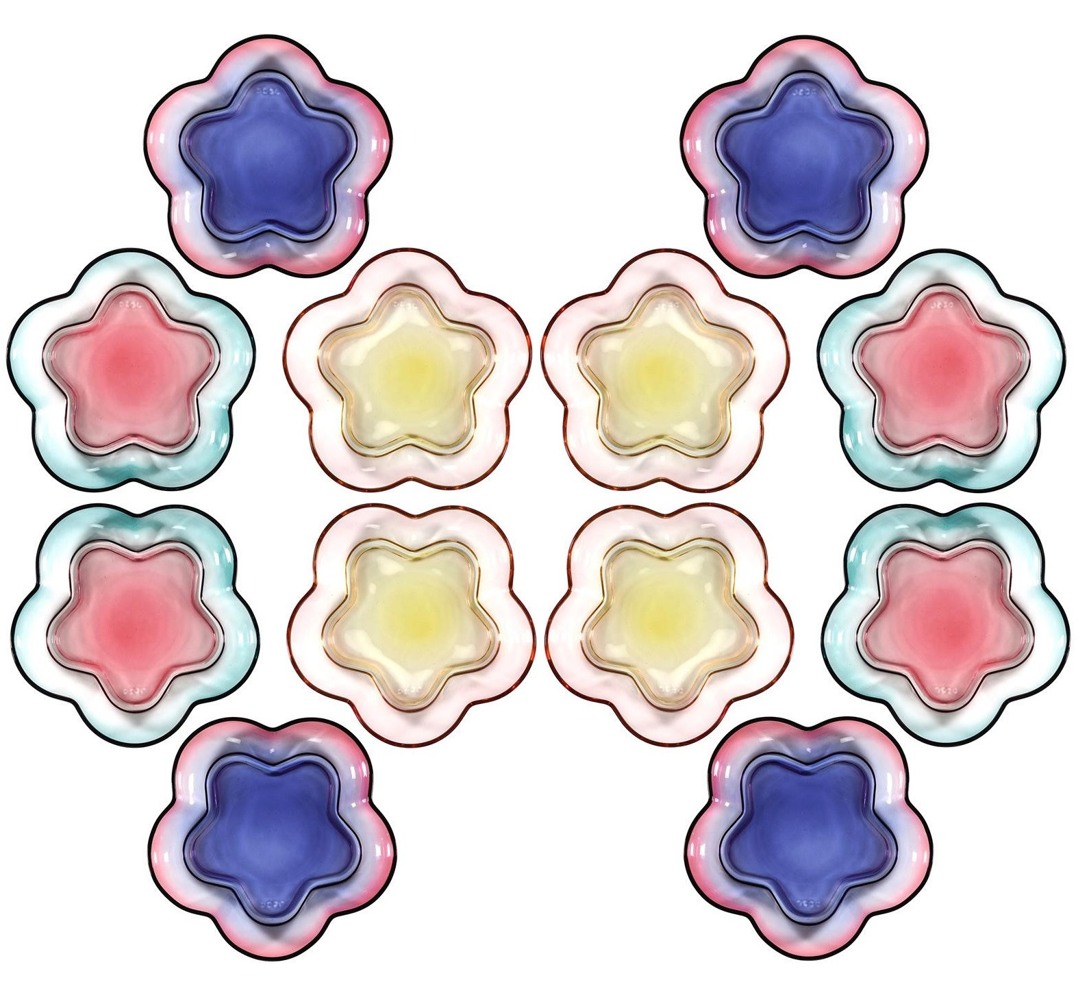Lot de 12 assiettes à dessert décoratives et colorées.